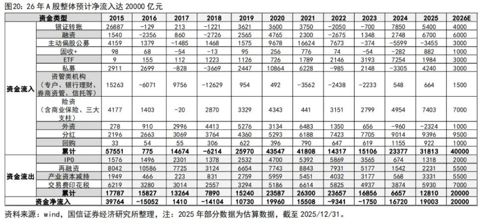 国信证券近期一则研报分析称,展望2026年,伴随居民资金入市进程推进,全年增量资金预计达2万亿元。