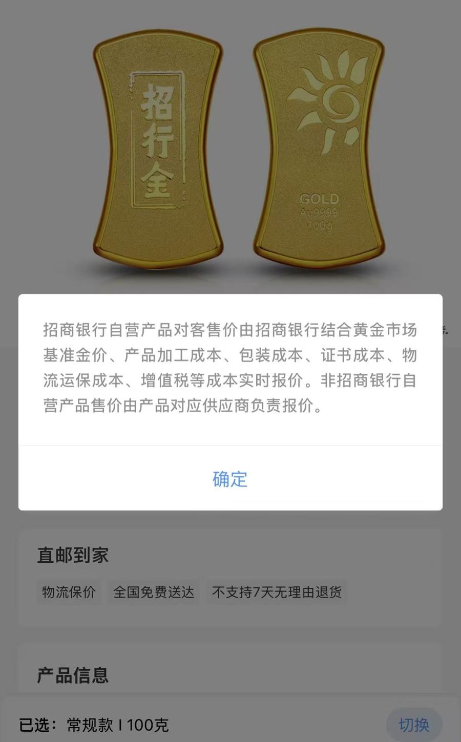 招商银行推出的实物金条,包含了加工费等成本。