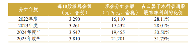 中信银行此次年报中另一大亮点在于对股东的回报。2025年度利润分配方案显示,拟每10股派发现金股息1.93元,连同已派发的中期股息,全年每10股合计派发现金股息3.81元。全年现金股息总额达212.01亿元,占归属于该行普通股股东净利润的比例提升至31.75%,分红金额和比例均创下历史新高。