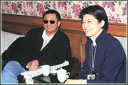 为了坚持戴着他的墨镜,王家卫不惜向中央电视台观众解释各种原因,同时要出示医生证明。眼疾是原因的一种,但是,我想眼睛定是他最容易流露情感的地方,他自己戴上墨镜,在电影中放大梁朝伟那双会说话的眼睛,他本人想通过电影与这个他生活的世界交流。
