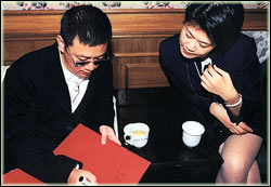 王家卫在去演播室之前,我因为工作关系需要接待他,总共待在一起约半小时,半小时内他给我的印象是很干净、有教养、善解人意、敏感而细腻,手指甲修剪得干净。在看完演播室现场和最后剪出的一个小时的片子后,我发现,那里表现的只是王家卫的冰山一角,这是个遗憾!