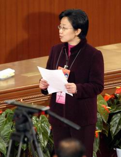 Zhang Pingying, the general scutineer, is reporting the balloting result to NPC deputies at the 6th plenary meeting of the First Session of the 10th National People's Congress (NPC), China's top legislature.