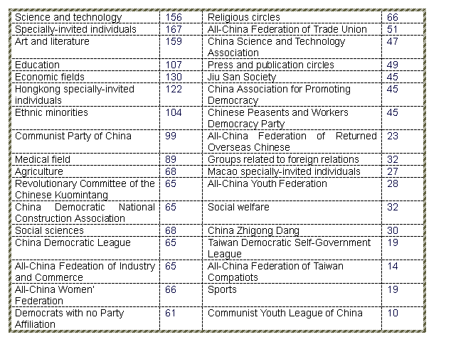 The people's congress system and the system of multi-party cooperation and political consultation under the leadership of the Communist Party of China is designed to assure democracy in China from the grass-roots level. The following graphic images help explain who the Chinese congressional representatives are and what happens to their proposals and other work.
